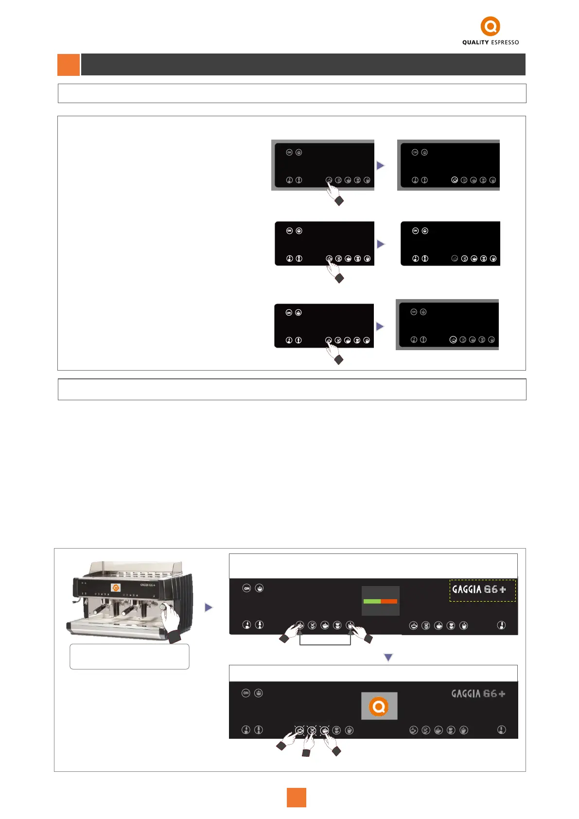 Once the light of the “Gaggia” or ”Visacrem” brand turns off, press and hold down the buttons for