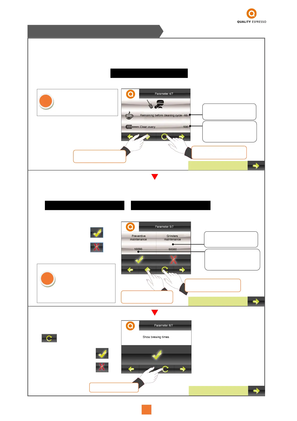 - To programme the number of coffees, after which the machine will show a warning message on the Display to