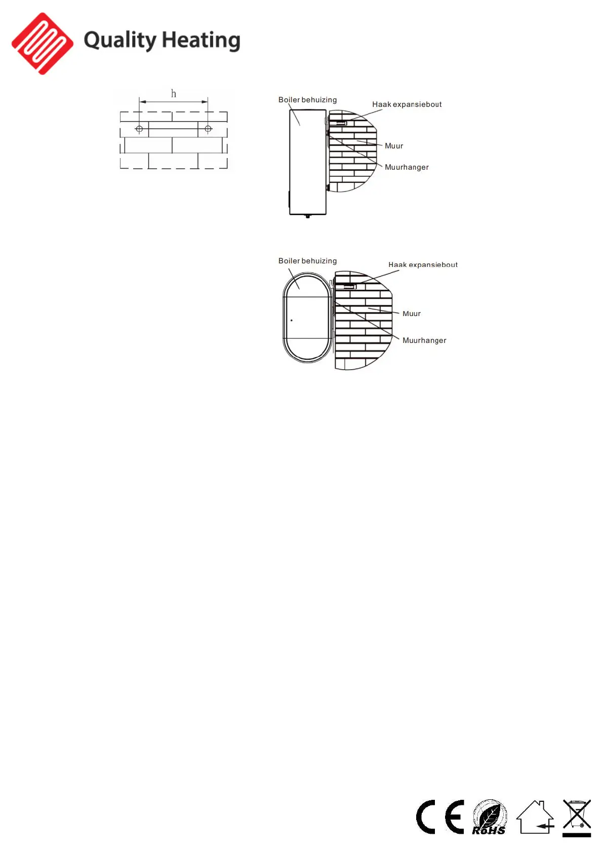 6) Lift the electric water heater, align the two square holes of the two wall hangers with