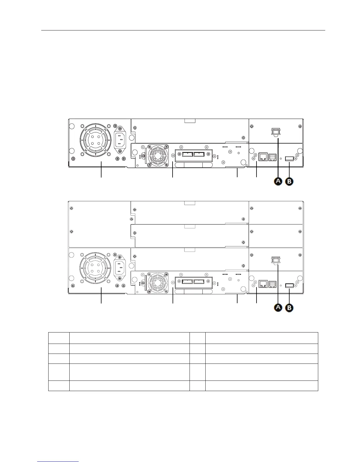 The rear panel of the Q24/Q48 Tape Library provides access to the drive interface connectors (either