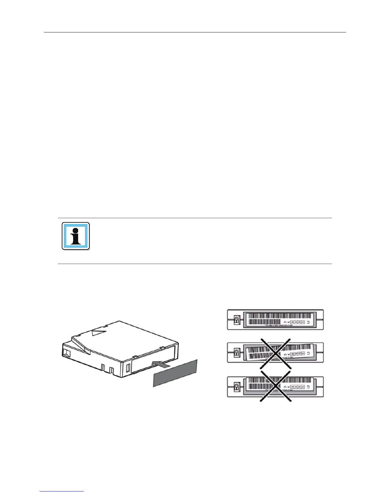 • Place identification labels only in the designated area on the tape cartridge. Labels placed in other
