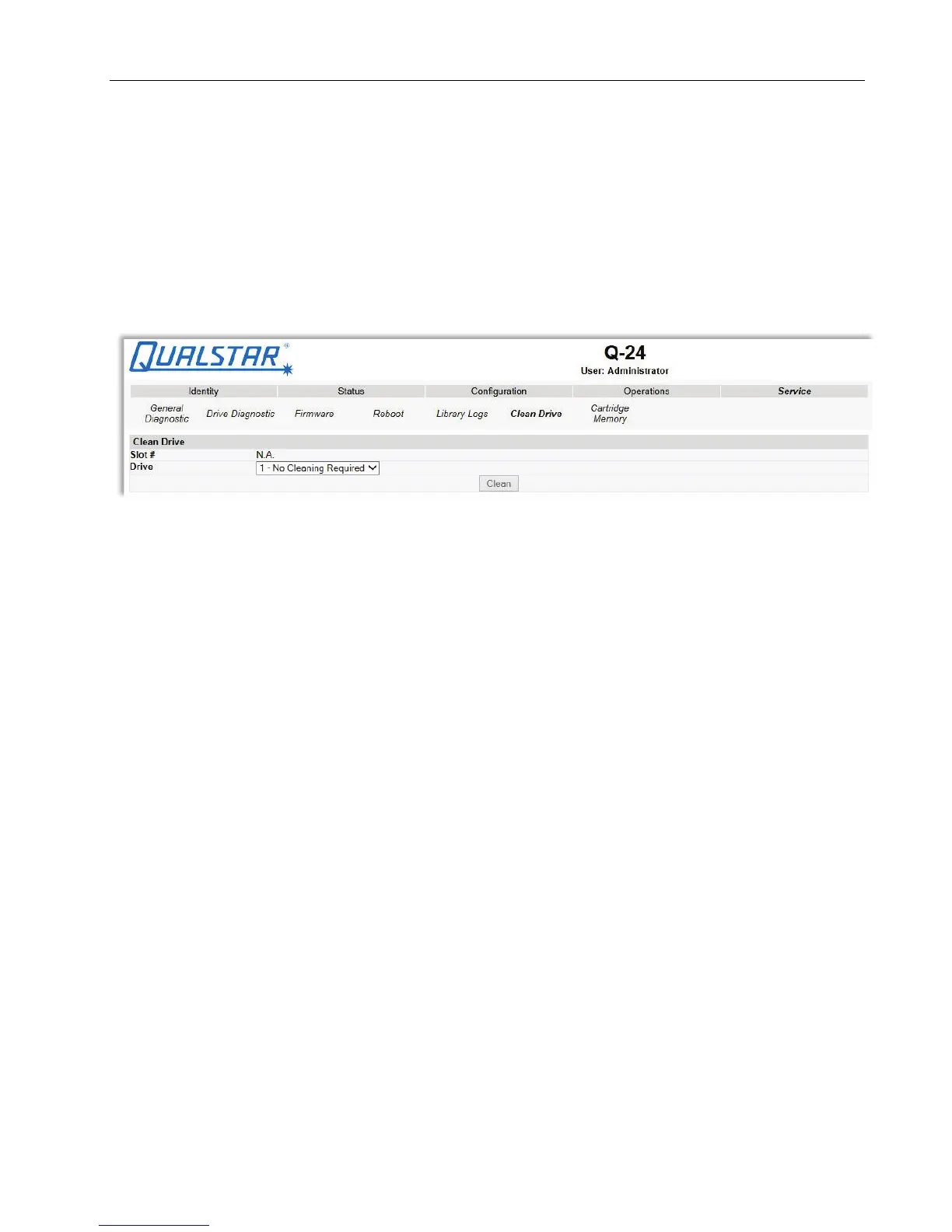 This page allows the user to initiate the tape drive cleaning process, if required.