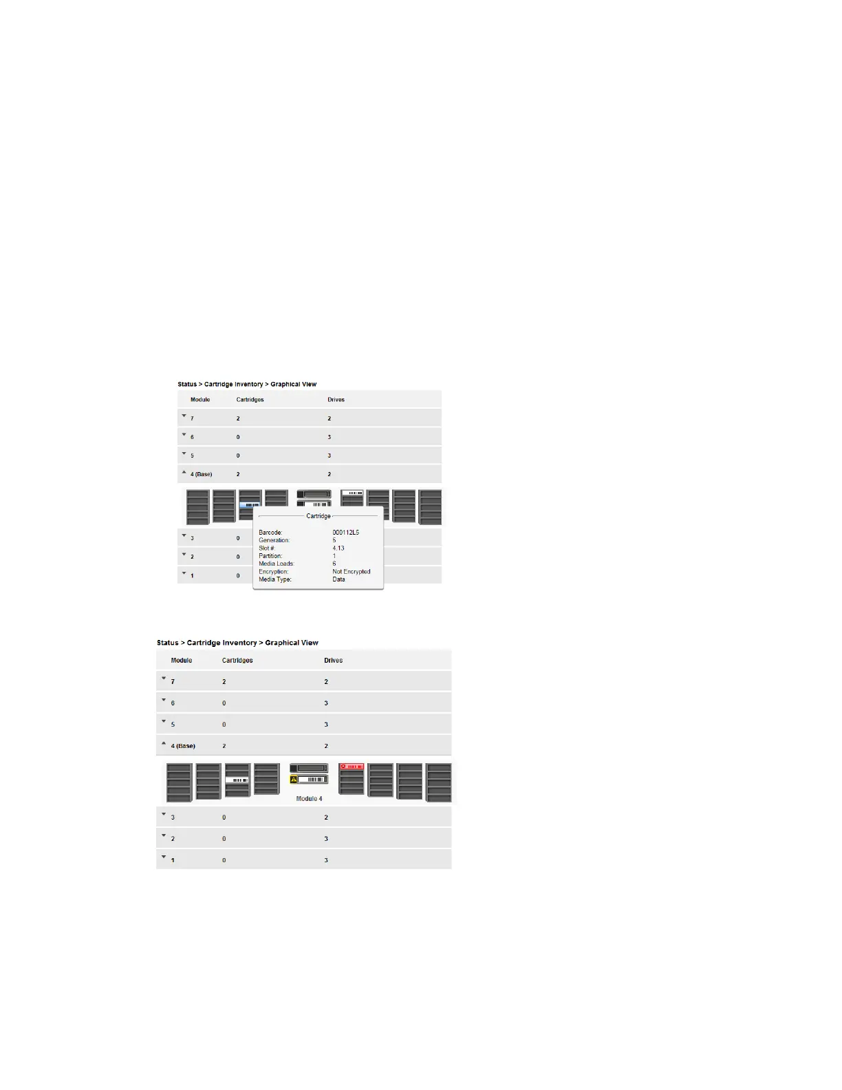 Warning State and Error State for a specific drive or cartridge are indicated with icons.