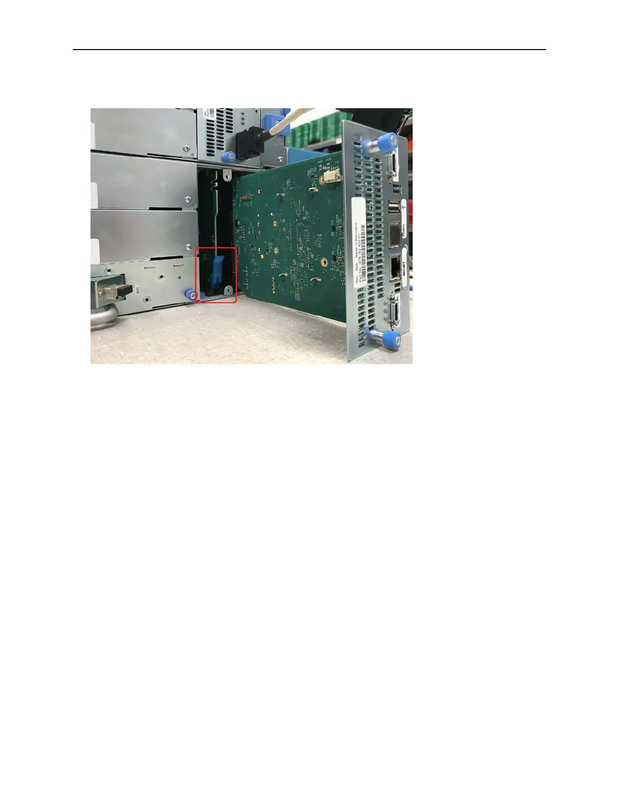 5. Tighten the blue captive thumbscrews with your fingers to secure it to the module.