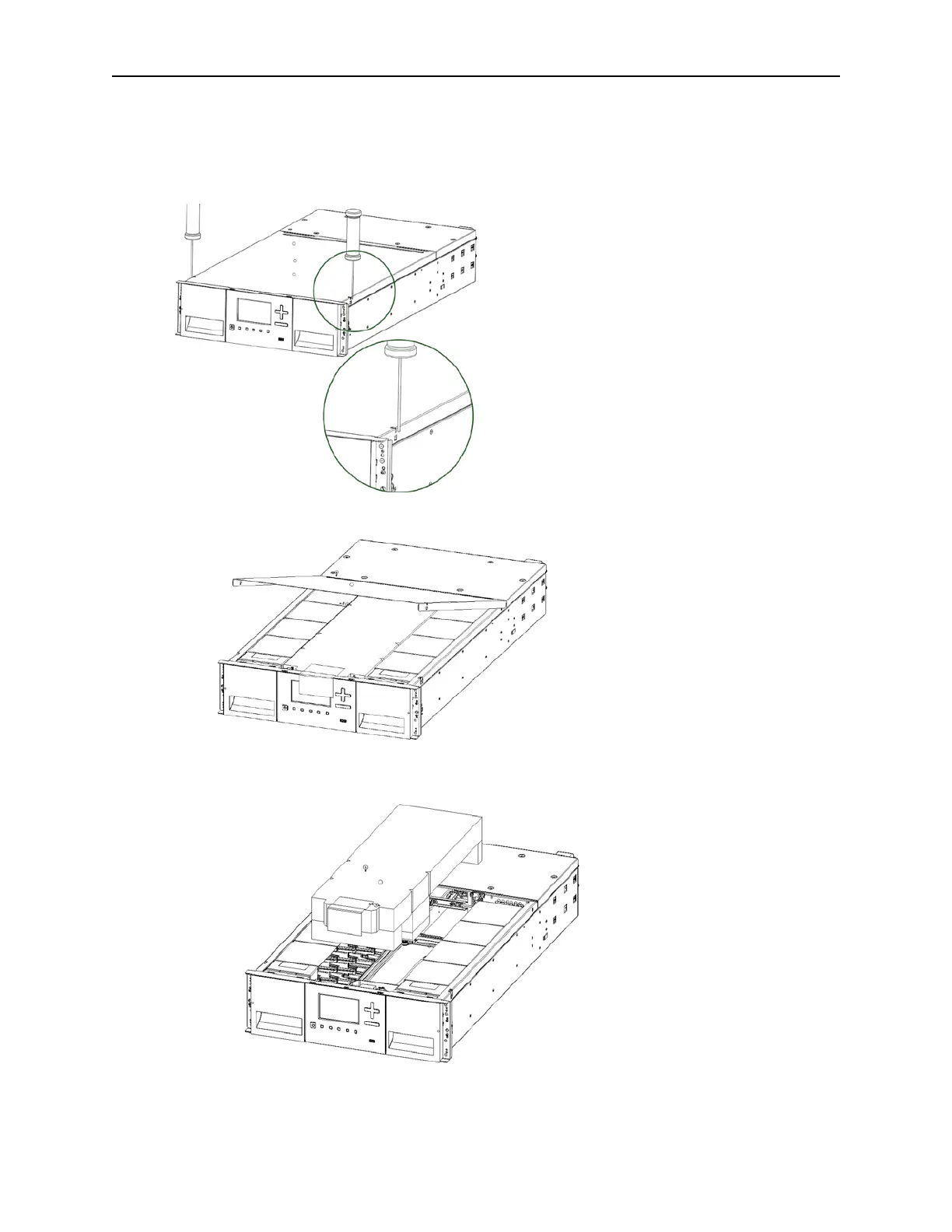 9. To remove the top cover plate from the Base Module, unlock the top cover using two small