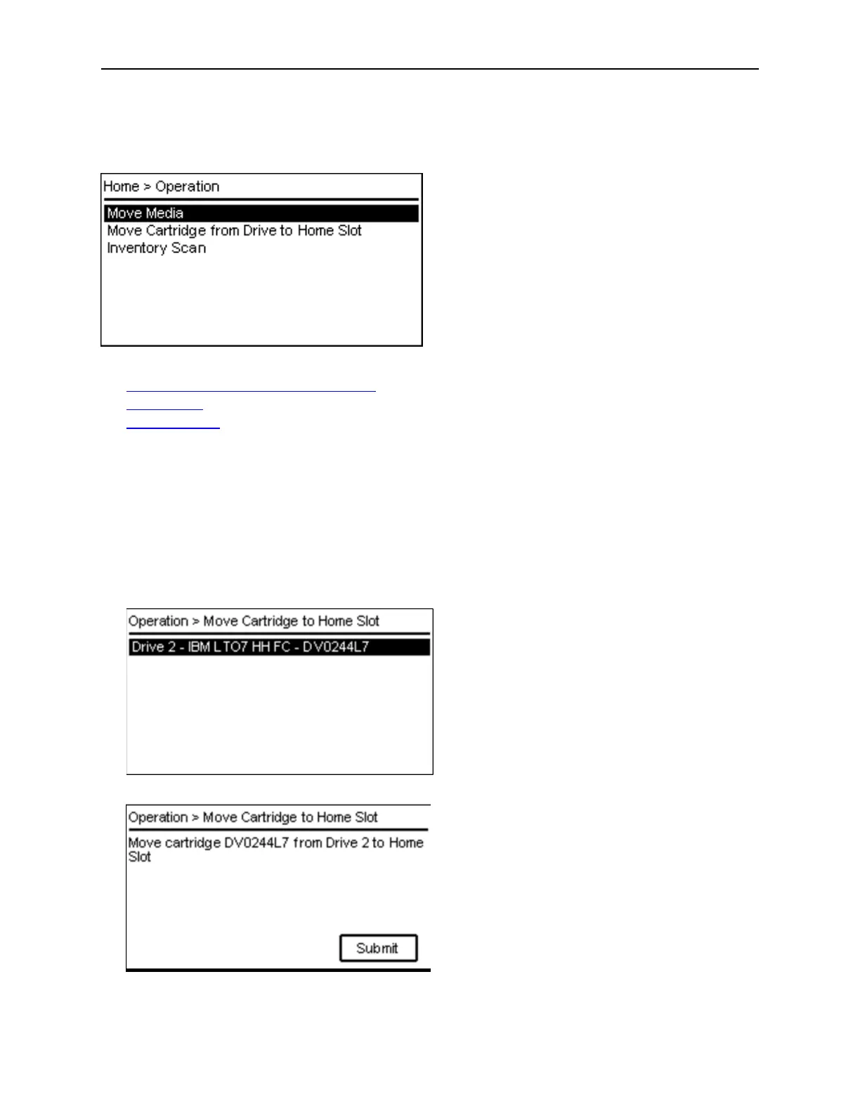 With the Operation > Move Cartridge from Drive to Home Slot feature, the user can move a cartridge