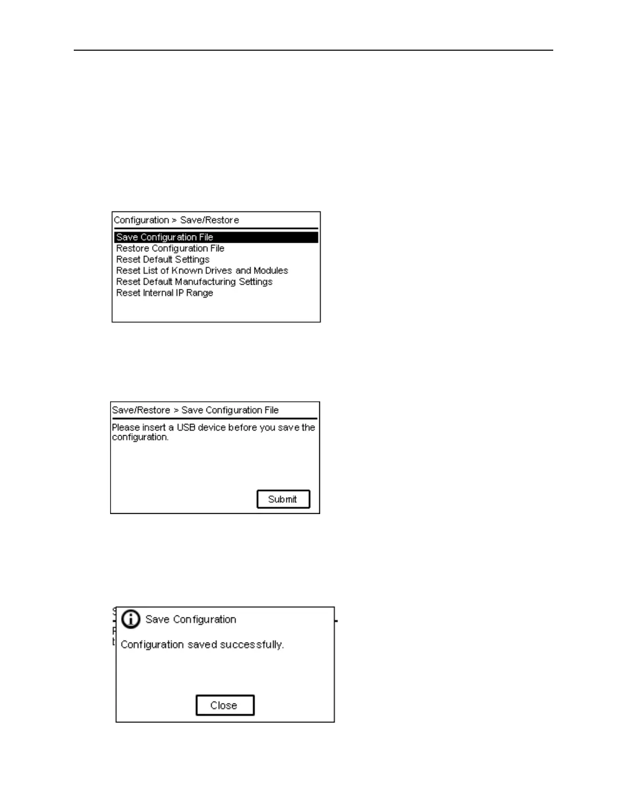 2. Press Submit to save the configuration file on the USB device. A dialog will notify the user that the