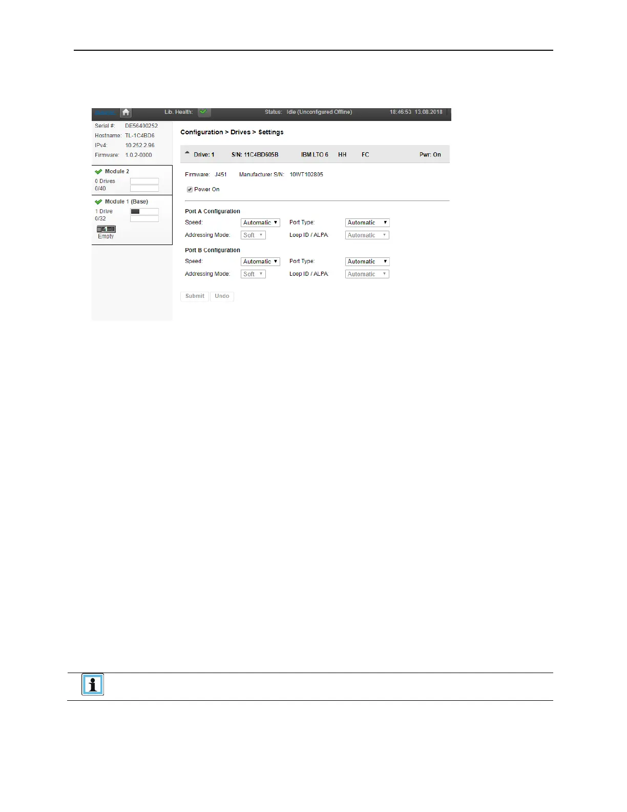 • Serial Number – The serial number assigned to the tape drive by the library. This serial number is
