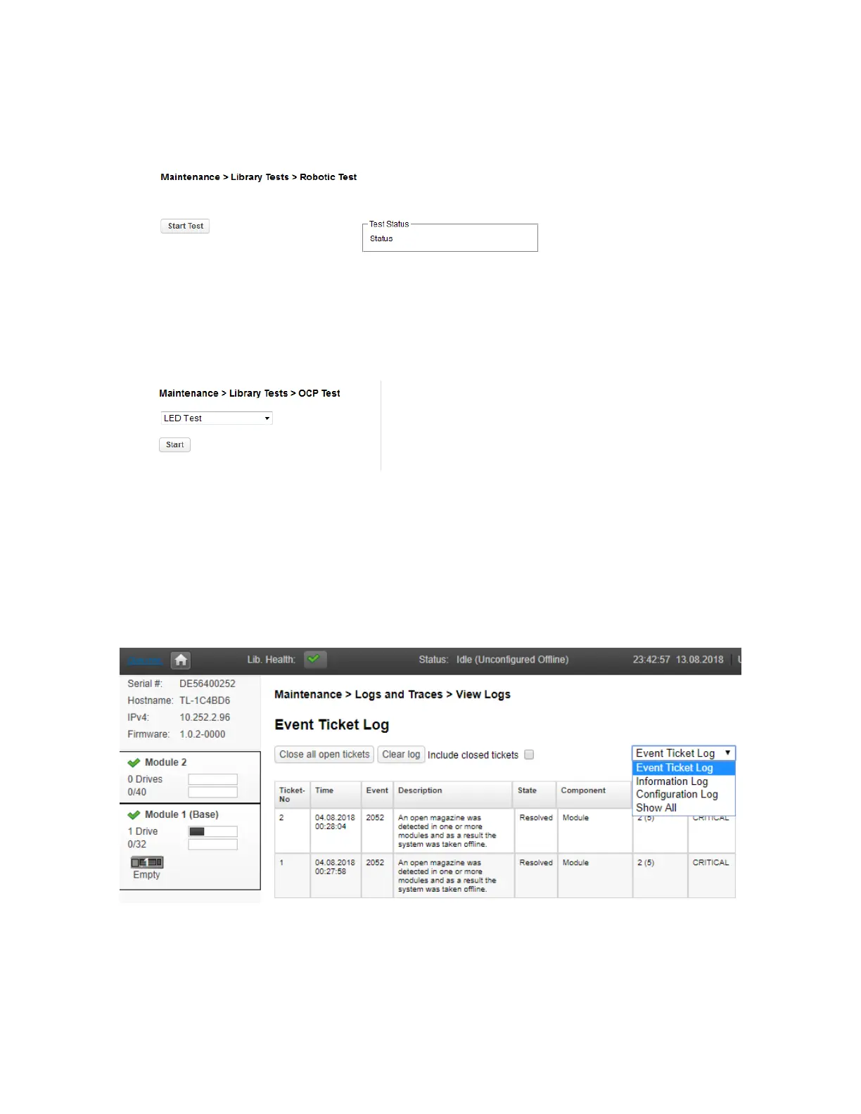 To view the library log files, navigate to the Maintenance > Logs and Traces > View Logs page and