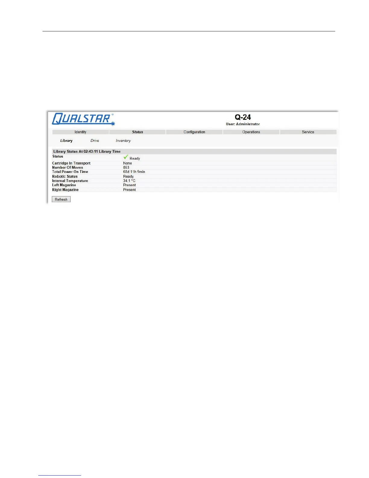 • Total Power On Time = Indicates total library power-on time
