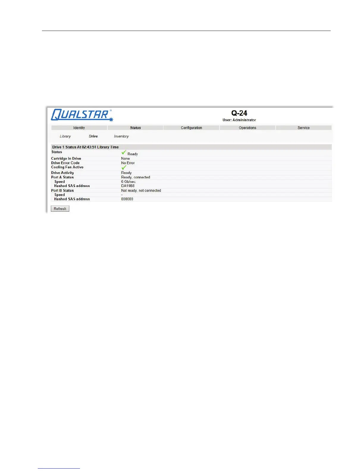 If multiple tape drives are installed in the library, the information will be shown by selecting it from