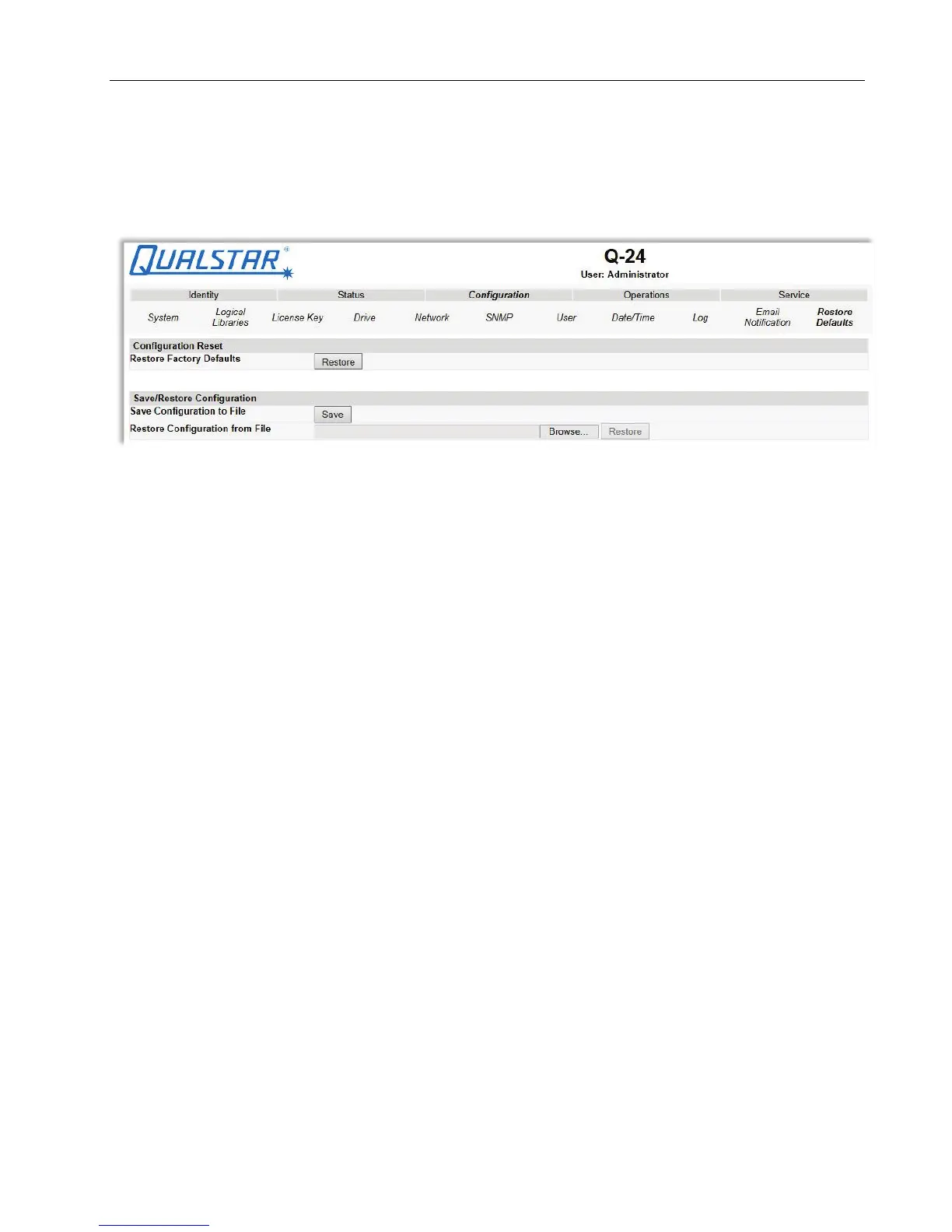 • <Restore> Configuration from File: The <Browse> / <Restore> buttons enable the