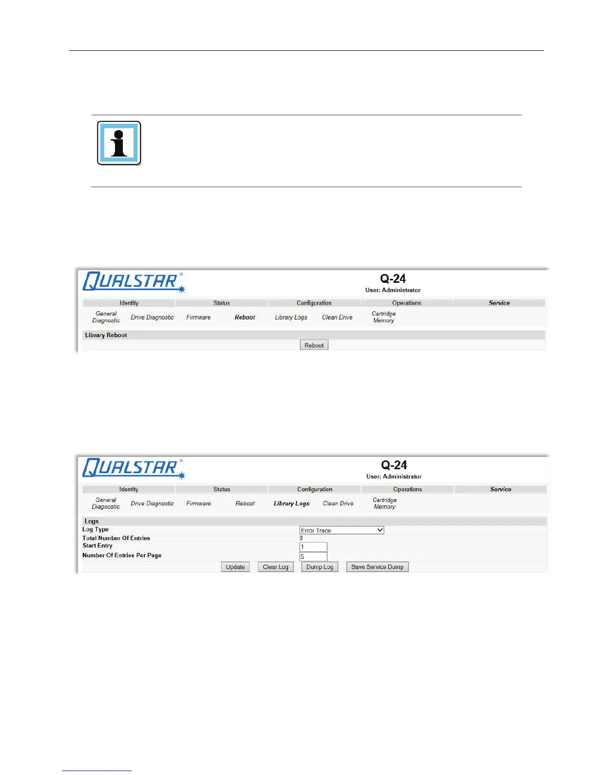 This page allows the user to view the library logs.