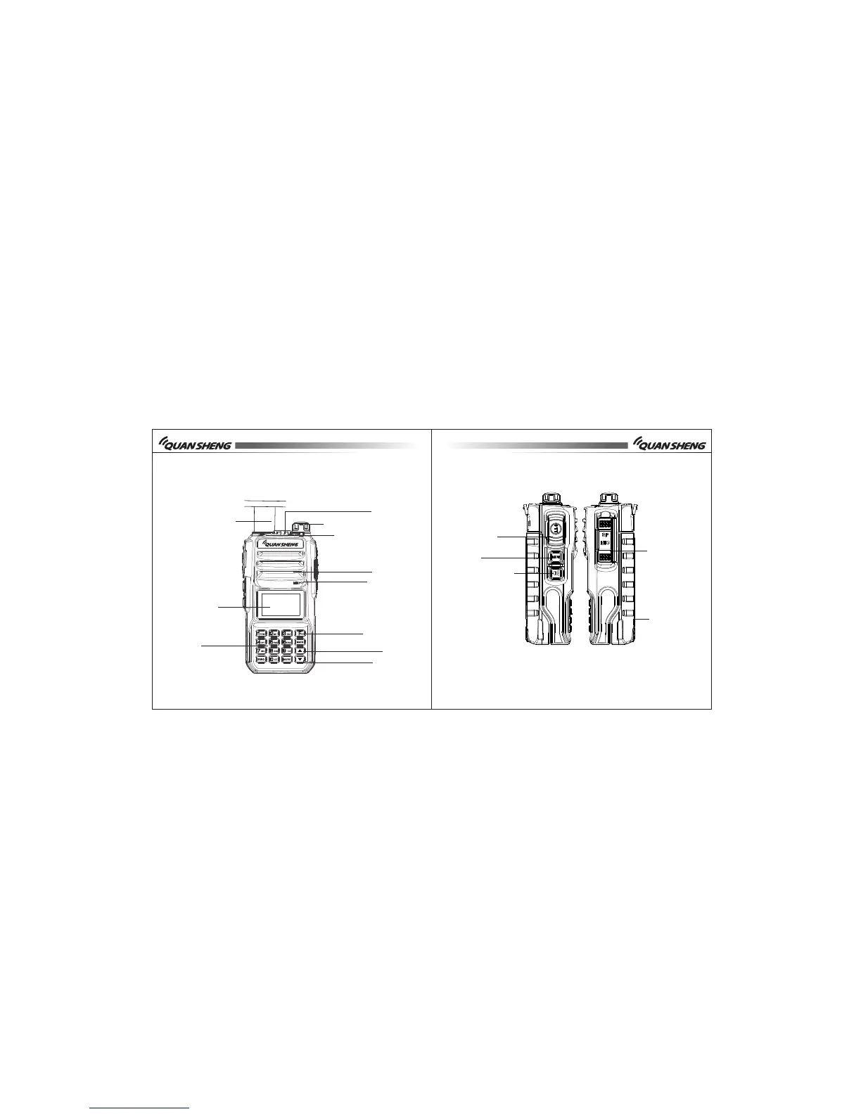 QUAN SHENG TG-UV2PLUS - Diagram; Radio Front Panel Diagram; Radio Side;Rear Panel Diagram