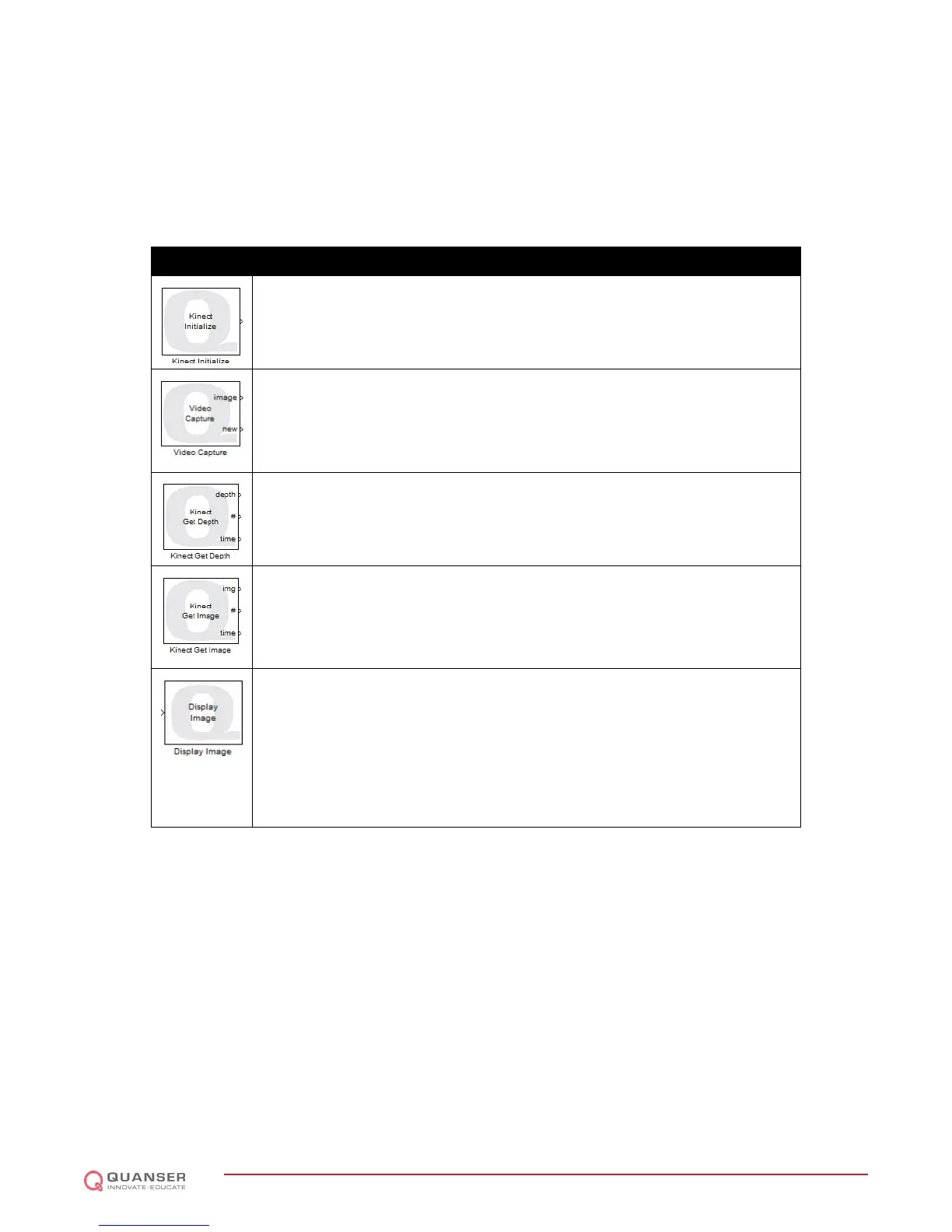 blocks used to interface with the Kinect and describes their purpose. Note: to use the QUARC