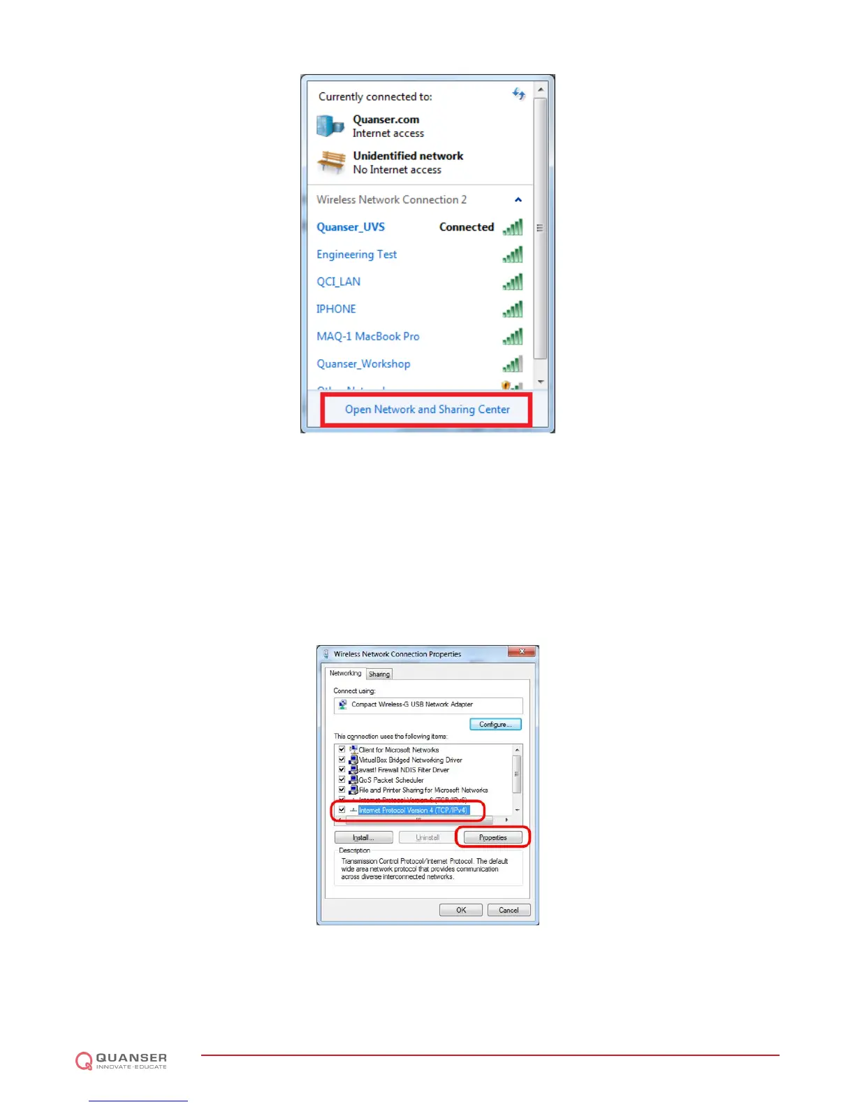 using a wired connection to the router and you don't have wireless adapter, you will not see Quanser_UVS network.