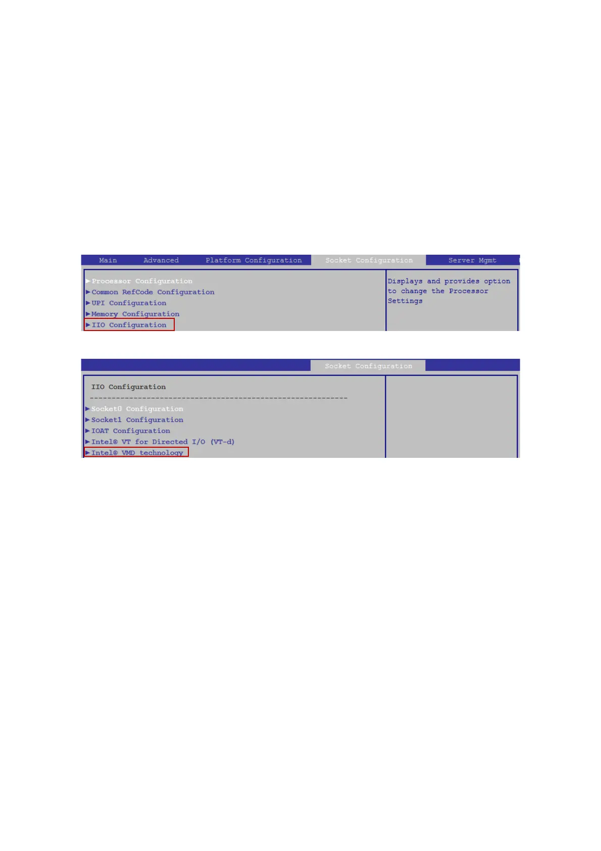 nology” in “IIO configuration” under the “Socket Configuration” screen from BIOS Main