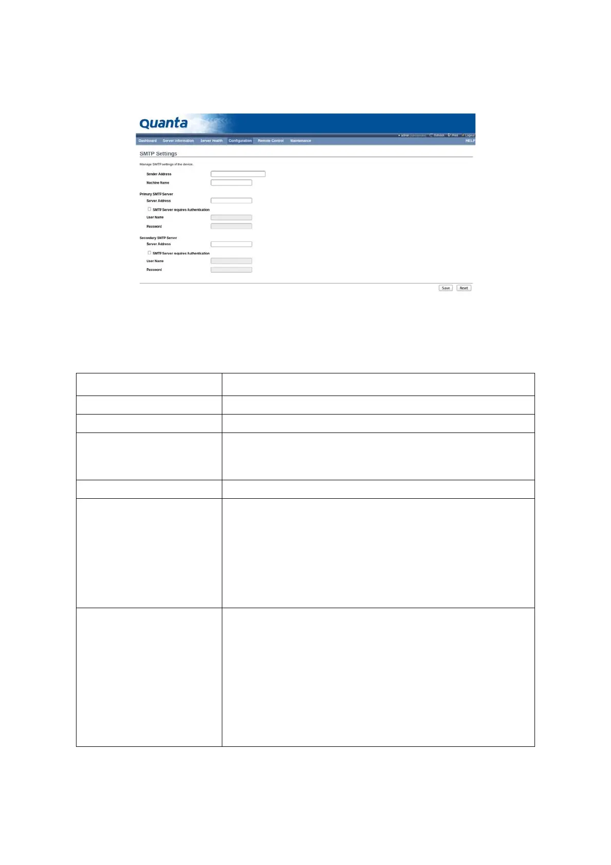 Primary SMTP Server Lists the Primary SMTP Server configuration.