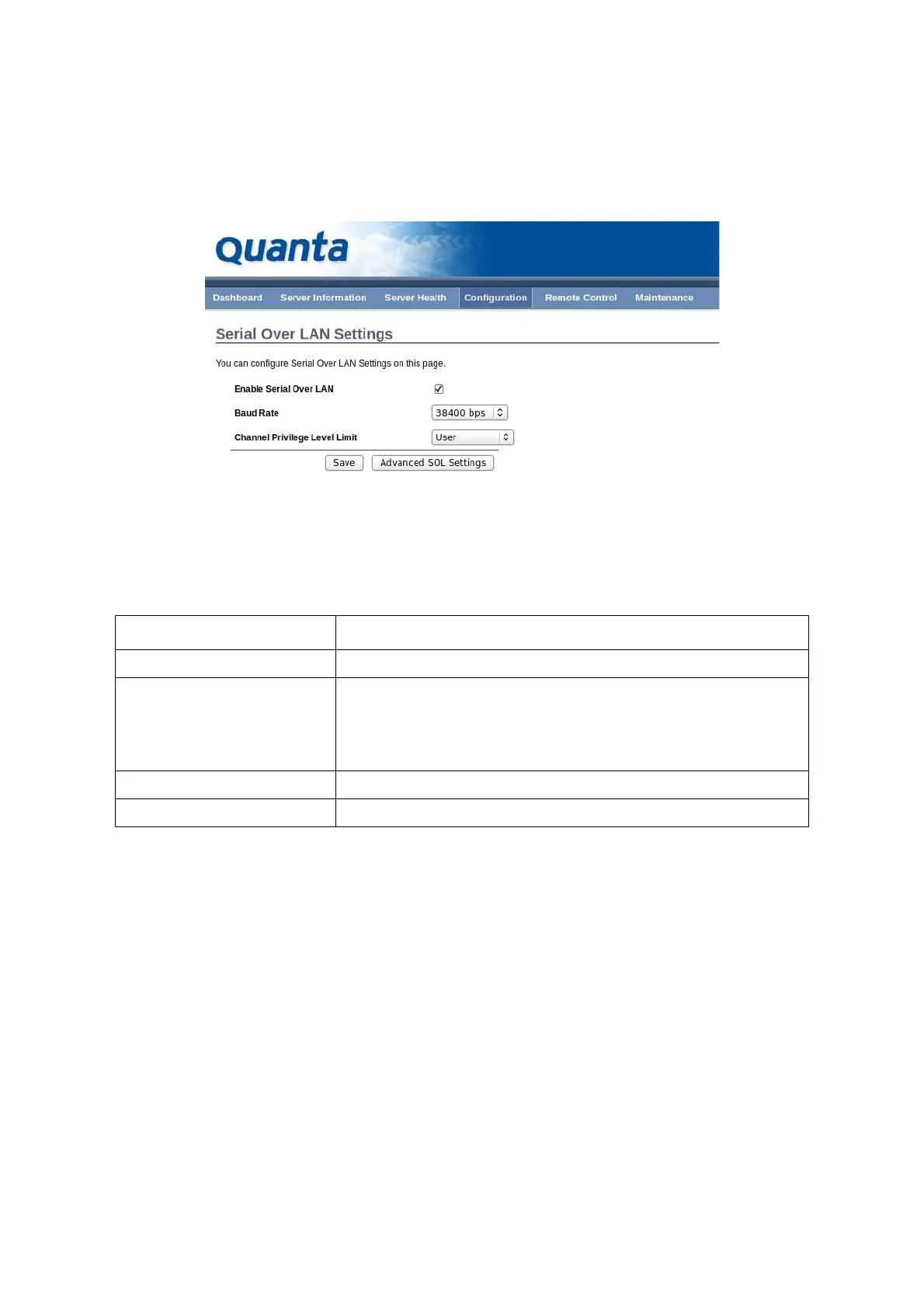Advanced SOL Settings Use this button to go to advanced SOL page.