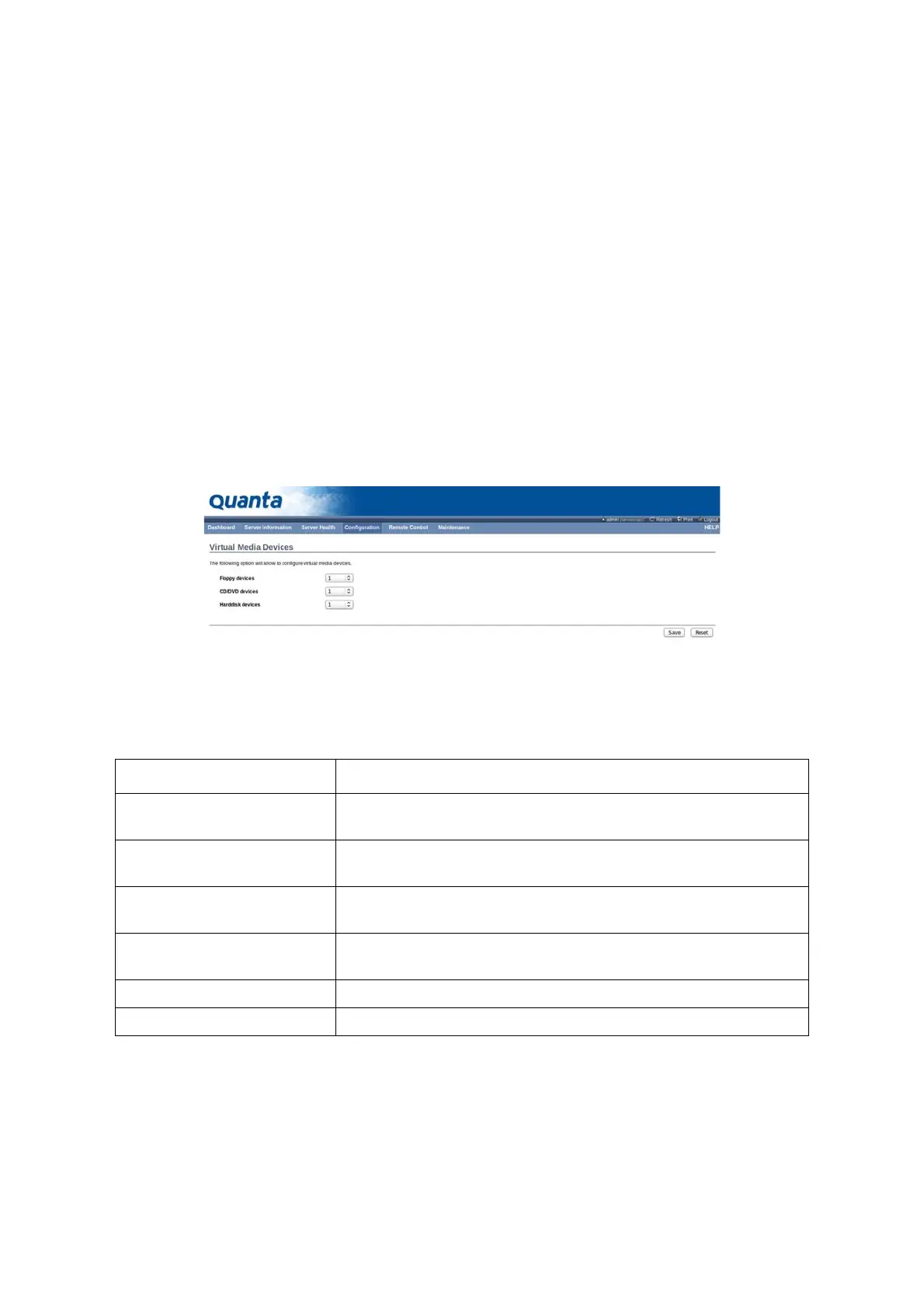 To open Virtual Media page, click Configuration > Virtual Media from the main menu. A