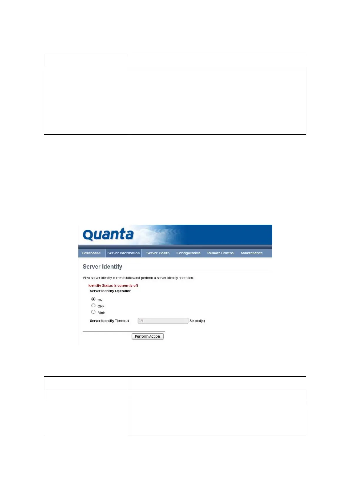 Table 6: Server Identify Page