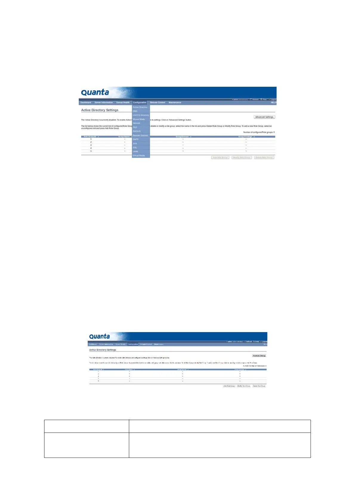 Table 10: Active Directory Settings Page