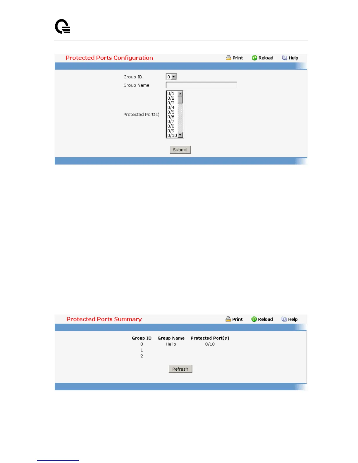 Protected Ports - The display list consists of all the protected ports. It is to be noted that