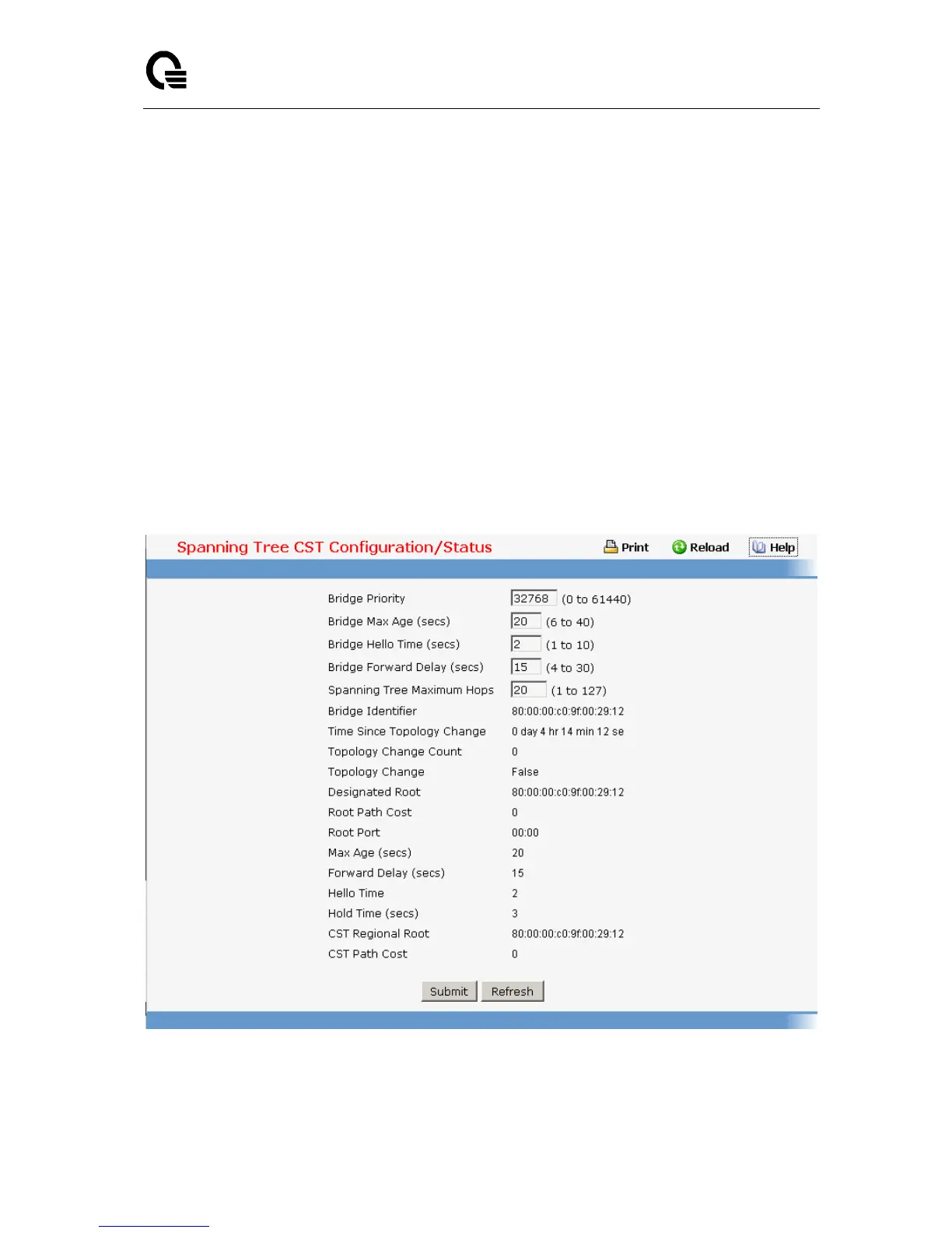 Submit - Applies the new configuration and causes the changes to take effect. These