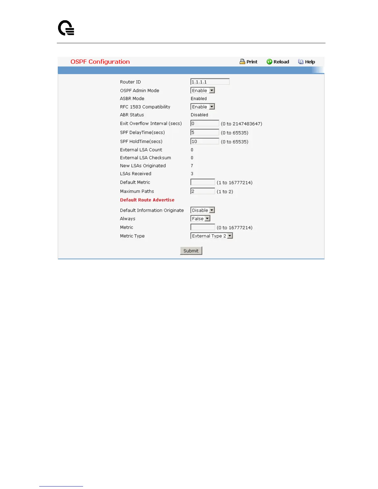 Metric Value - Enter the metric value you want applied for the default route advertised