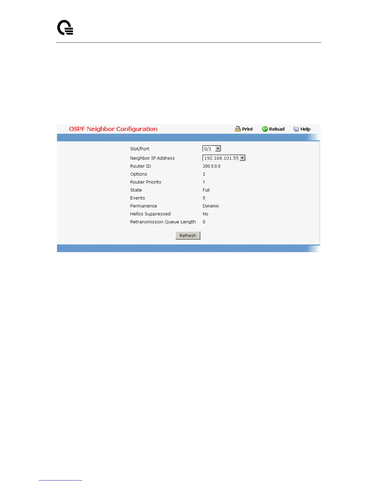 Refresh - Refresh the data on the screen with the present state of the data in the switch.