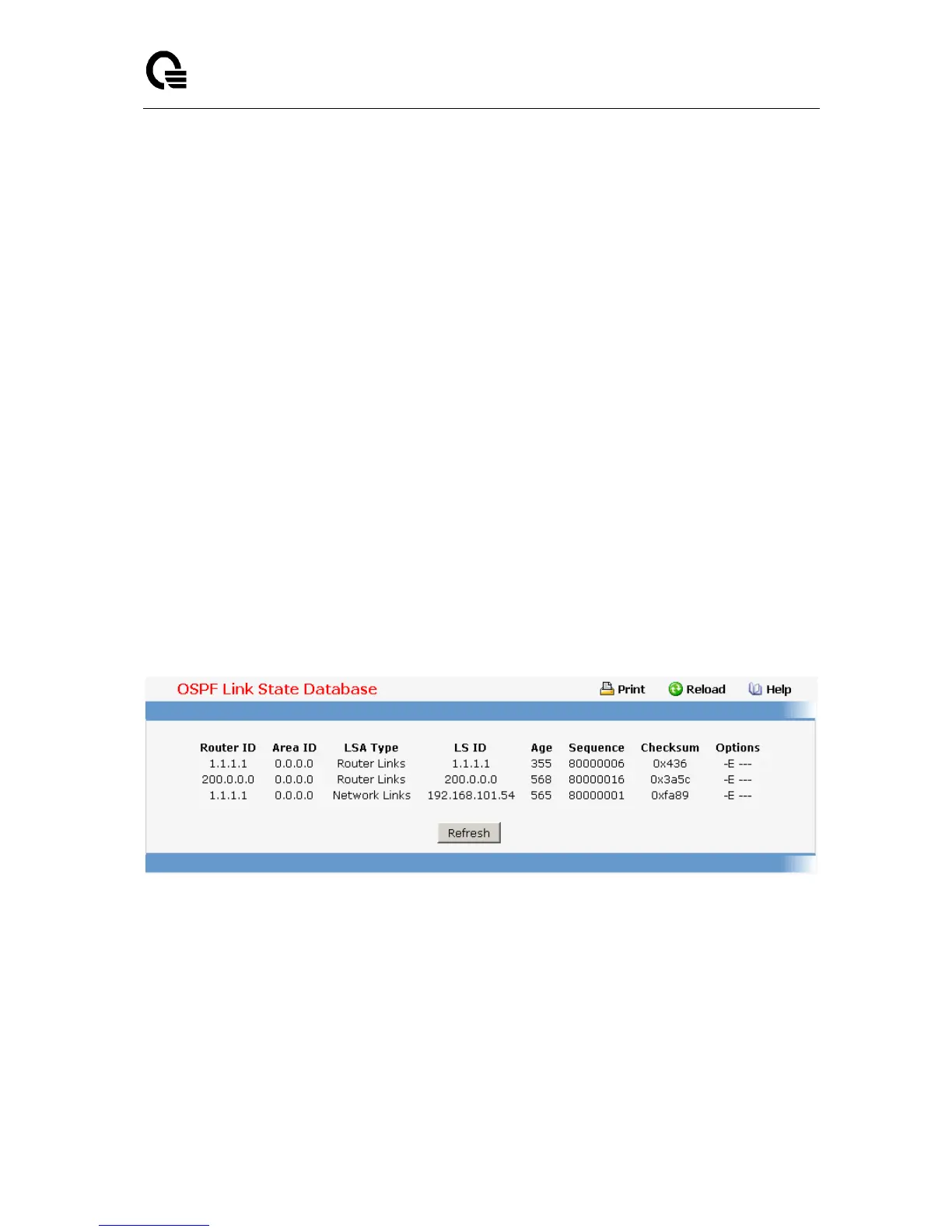 Refresh - Refresh the data on the screen with the present state of the data in the switch.