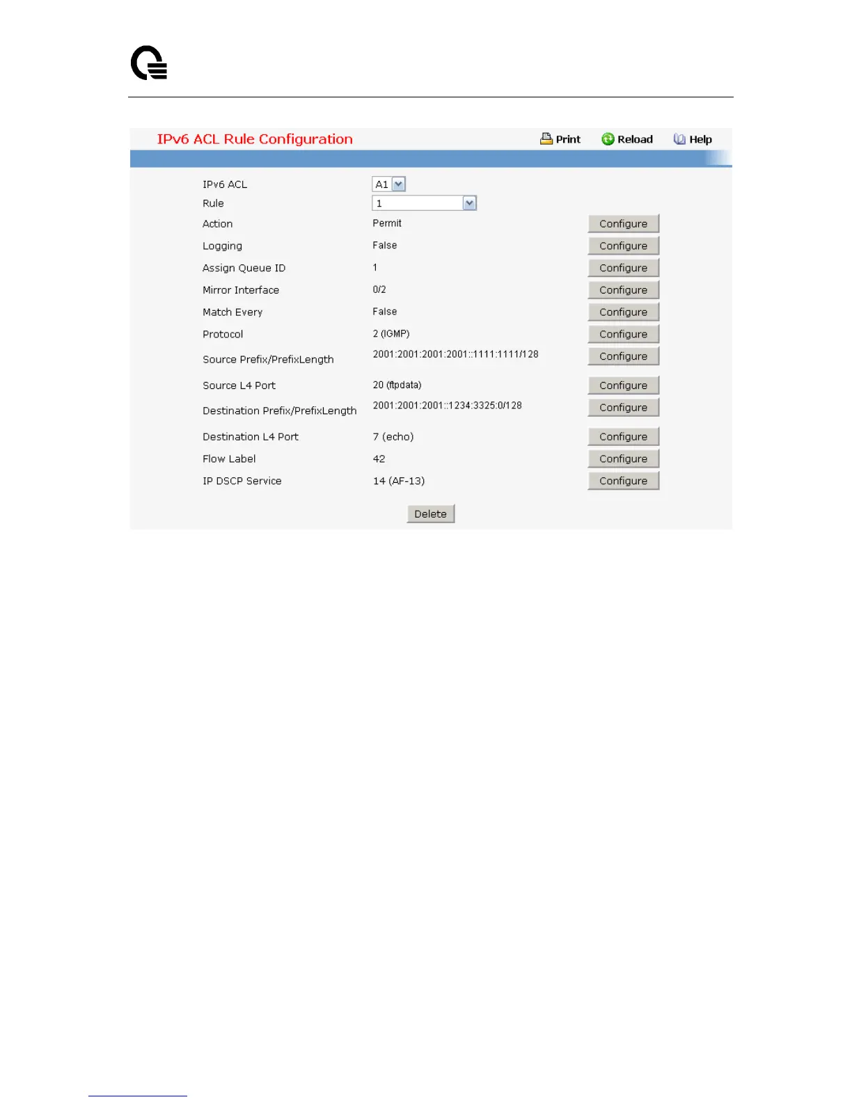 Rules for the MAC ACL are specified/created using the MAC ACL Rule Configuration menu.