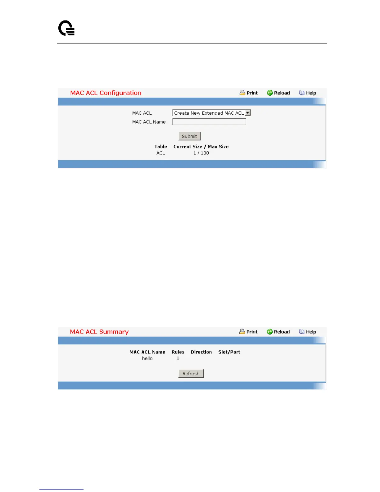 Delete - Removes the currently selected MAC ACL from the switch configuration.