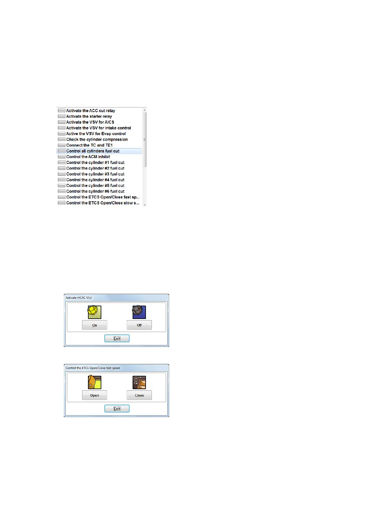 of actuators tests depends on the denite ECU model.