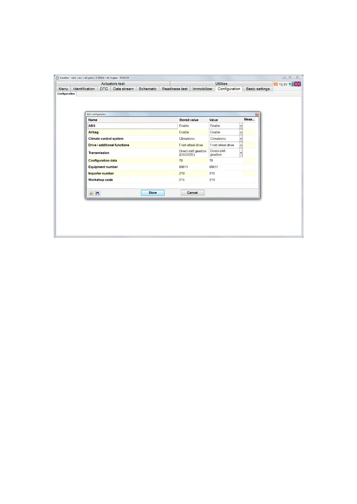 denite car trim level. Conguration is often called coding. ScanDoc scanner ena-
