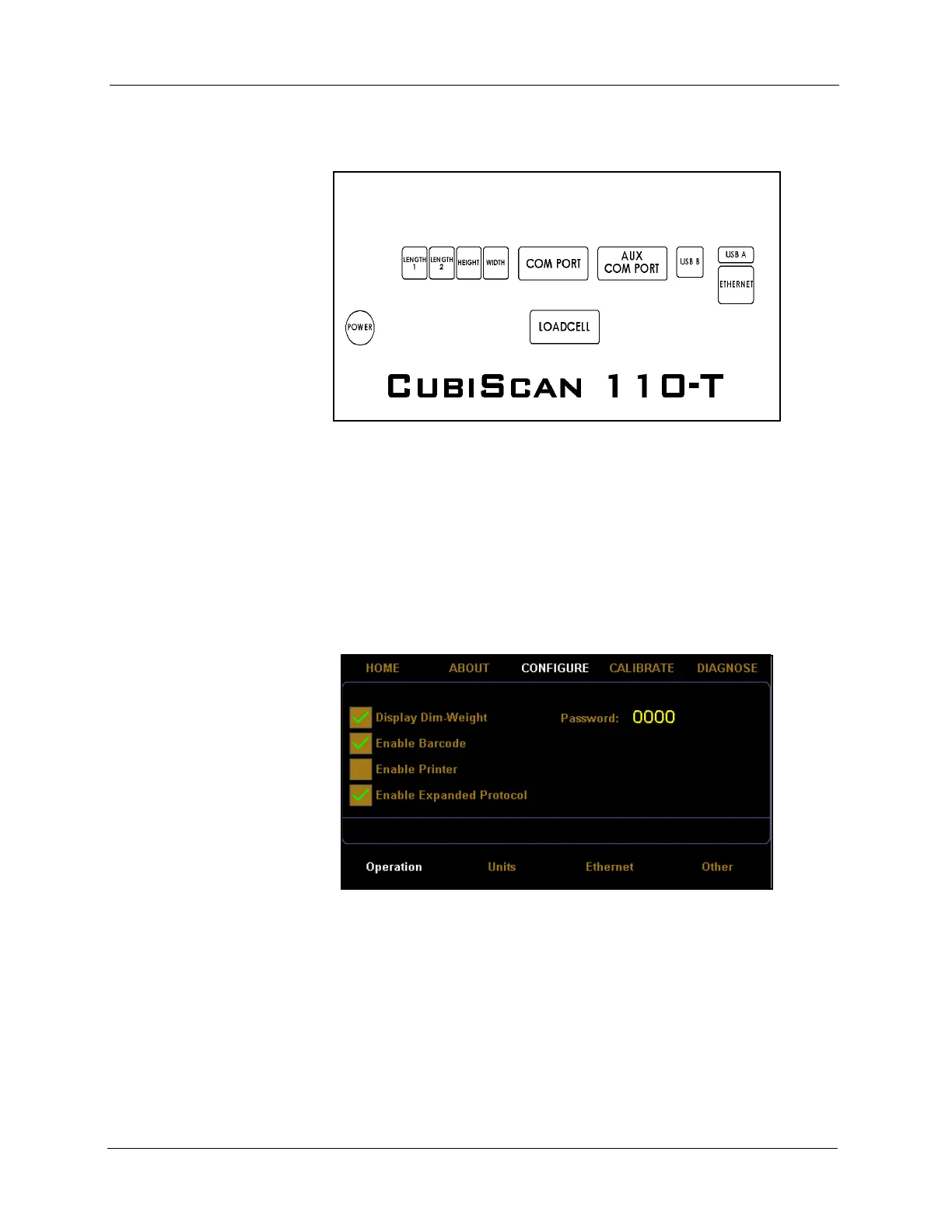 to turn the barcode feature on. On the CubiScan 110-T touchscreen, go