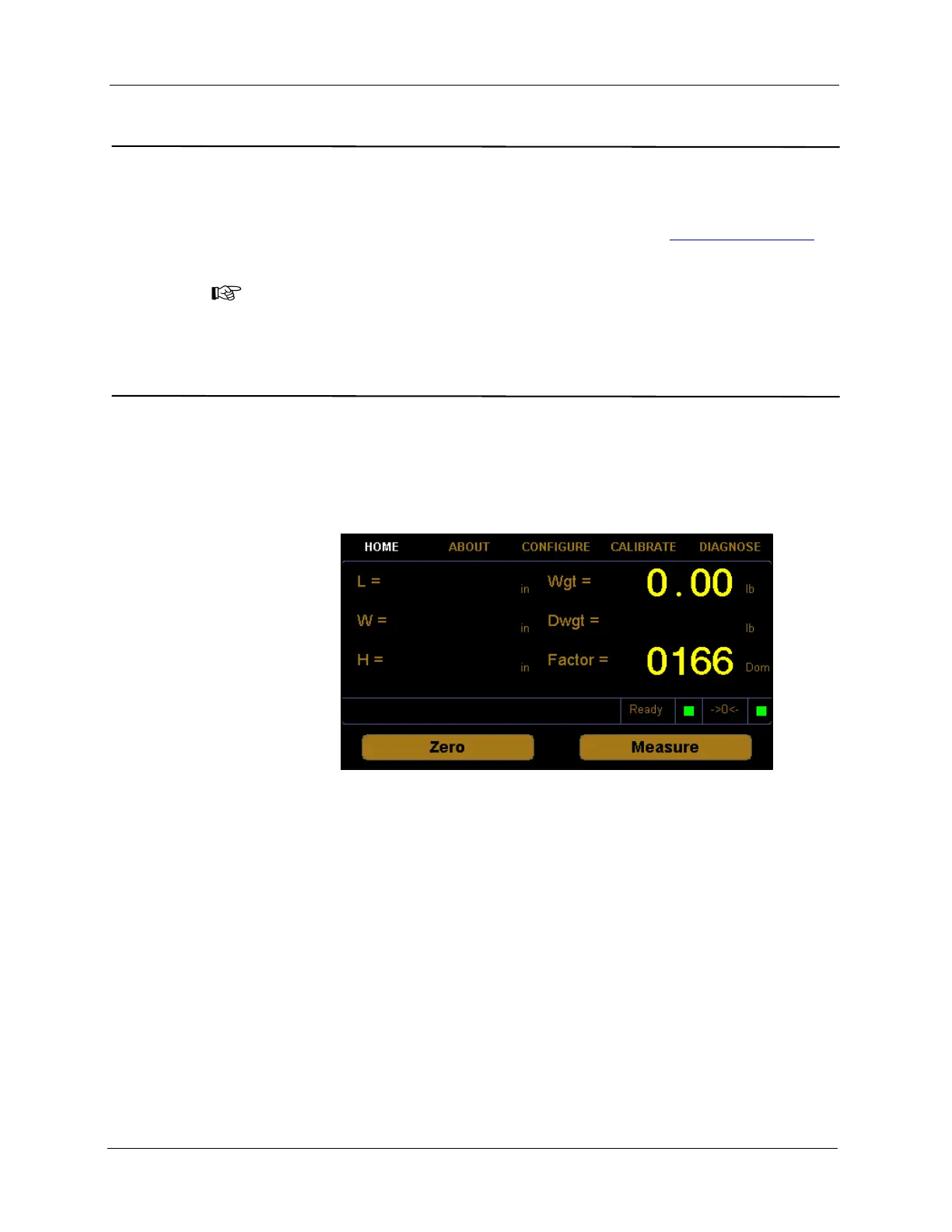 use the control panel to cube and weigh packages. Measurements and