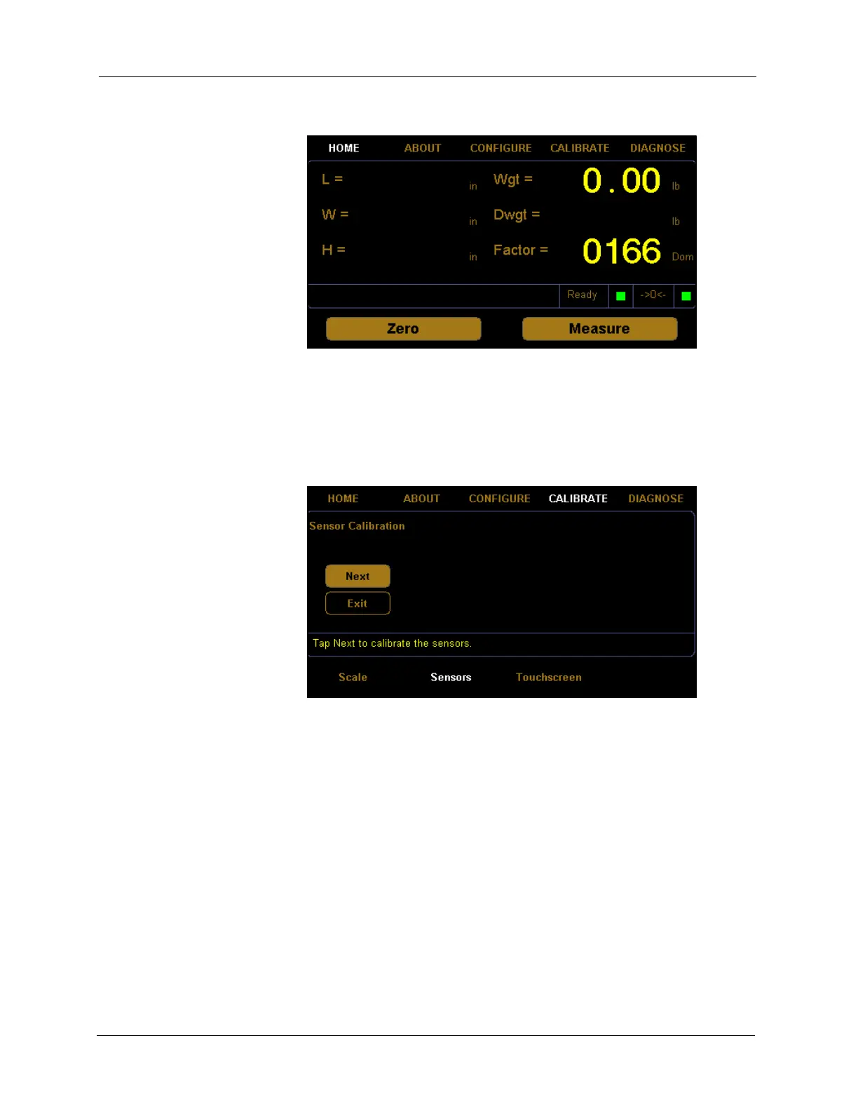 Quantronix CubiScan 110-T - Figure 27 Sensors Calibration Menu