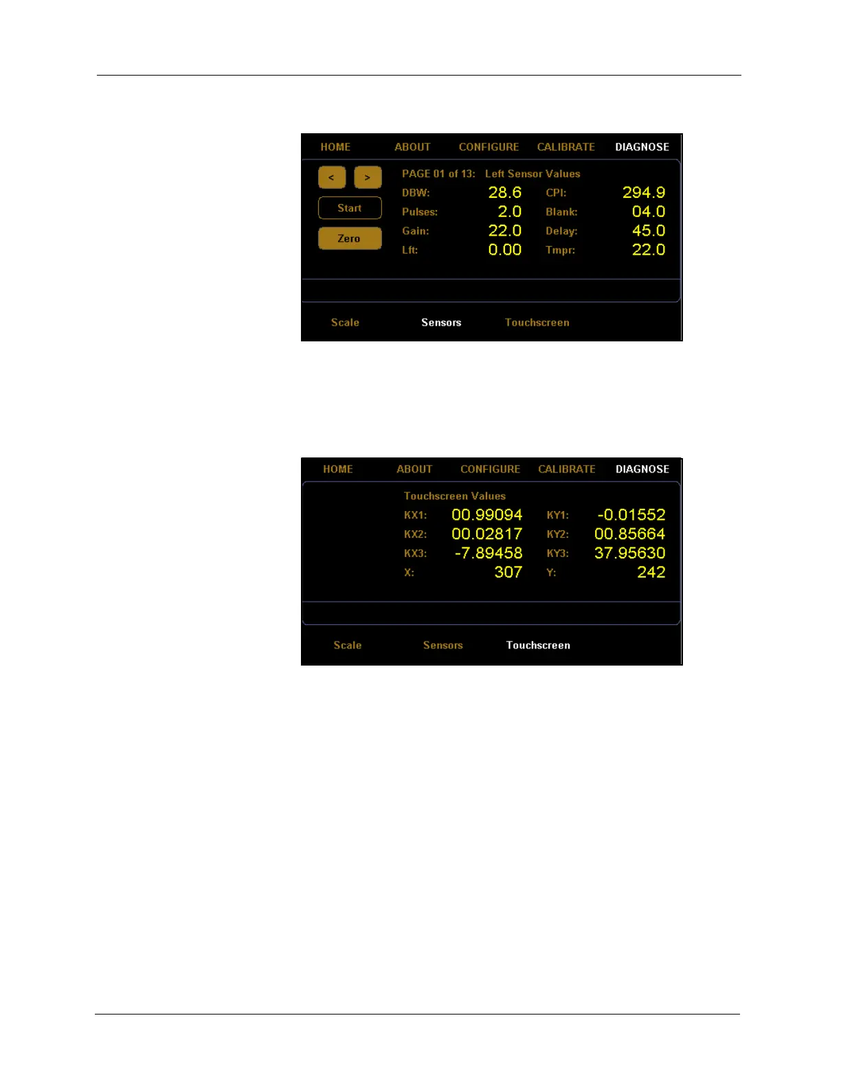 First Sensor Diagnostic Screen