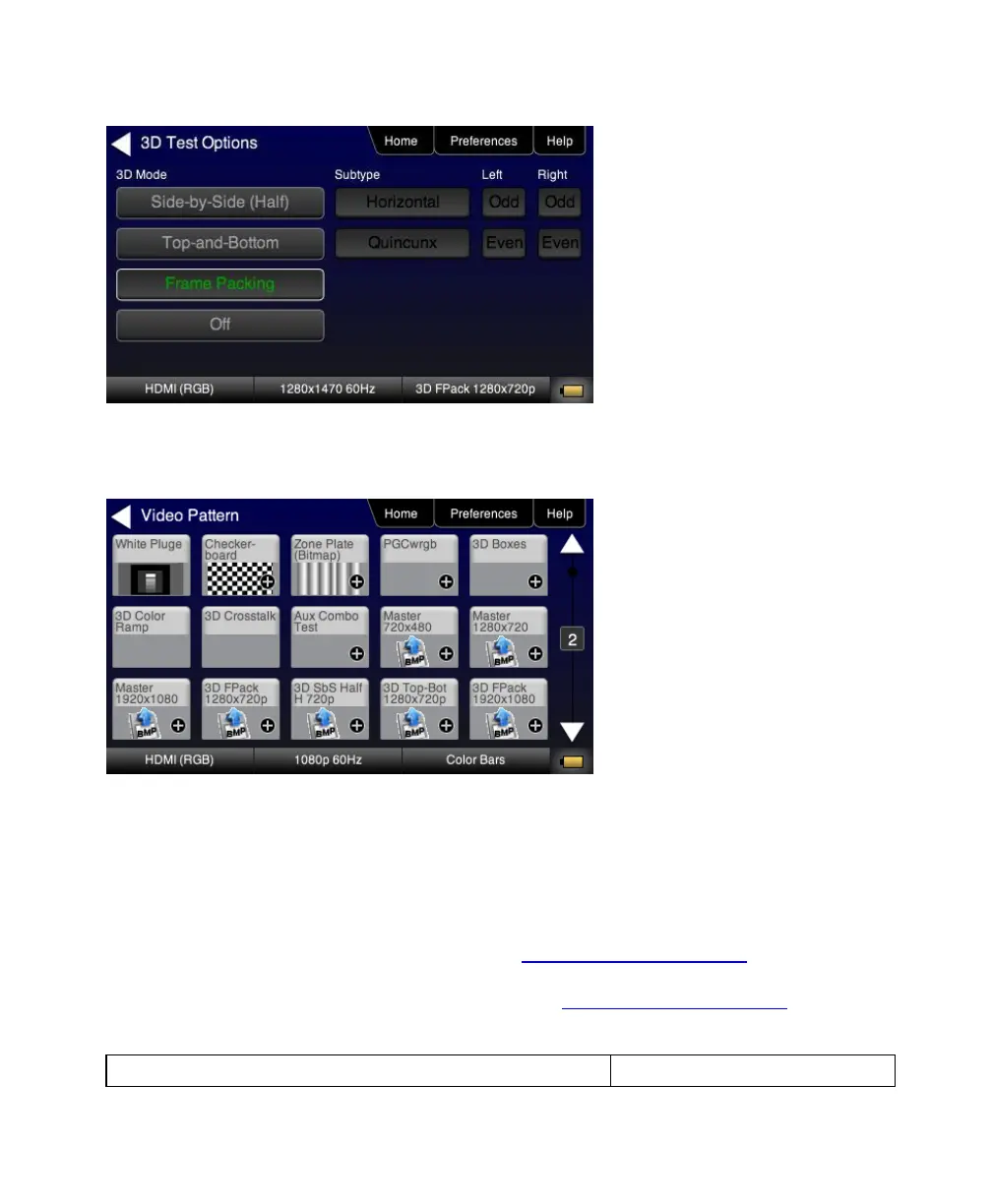 4. Select the desired 3D test pattern from the list shown in the screen example below.