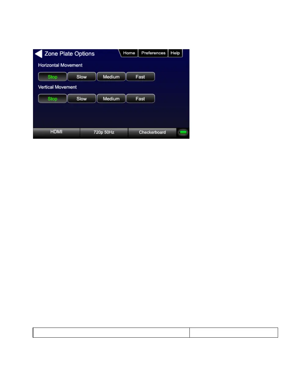 settings. To halt the motion, touch Stop for either or both of the Horizontal Movement and Vertical Movement.