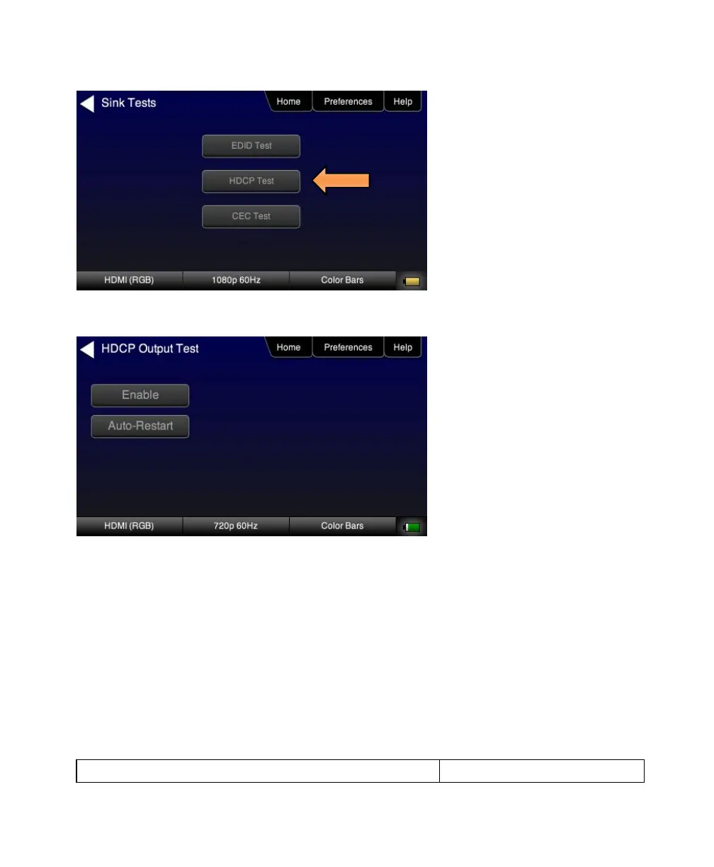 5. Touch select Enable from the HDCP Output Tests menu shown below.