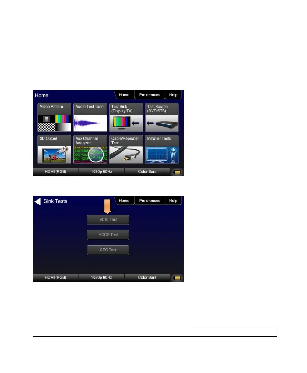 3. Touch select EDID Test from the Sink Tests menu shown below.