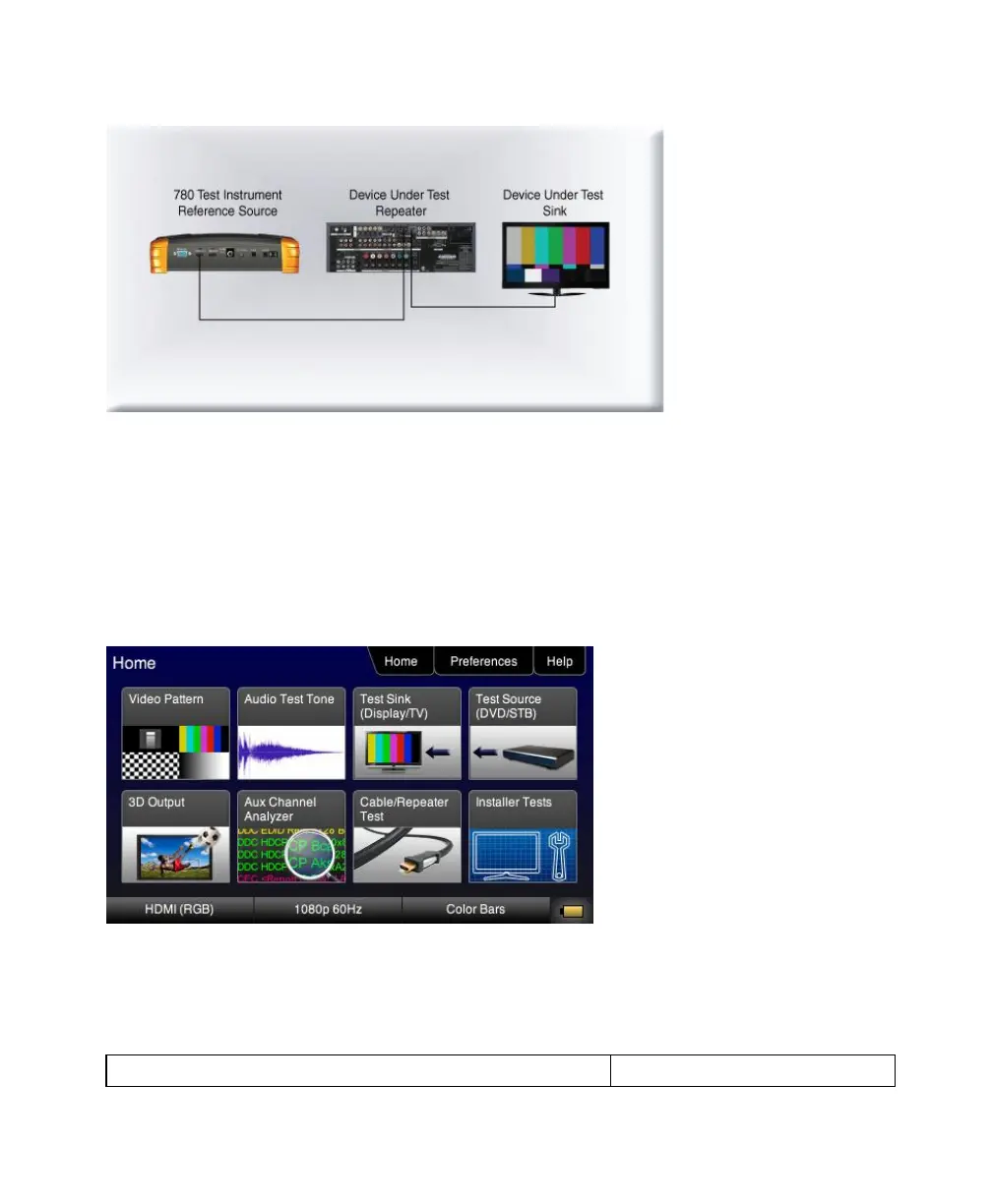 3. Touch select Test Sink (Display/TV) from the top level menu shown below.