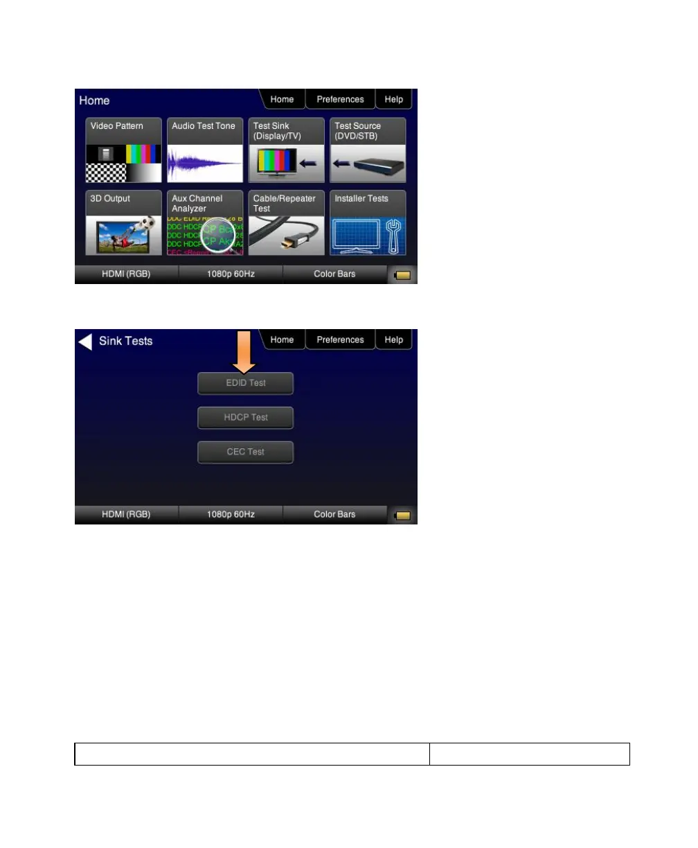2. Touch select EDID Test from the Sink Tests menu shown below.