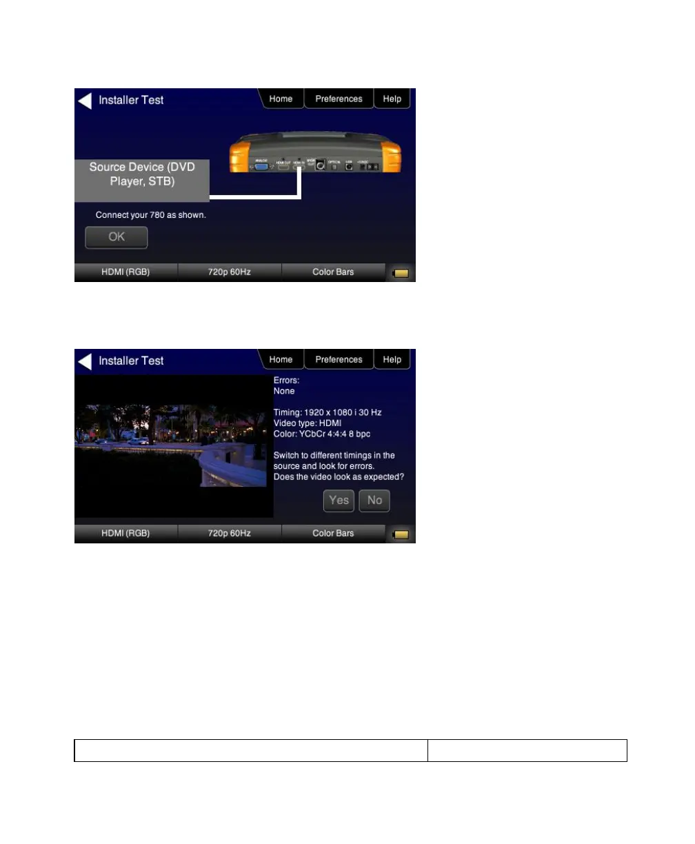 You will be asked to verify the video and video parameters presented on the 780 display. Touch select the appropriate