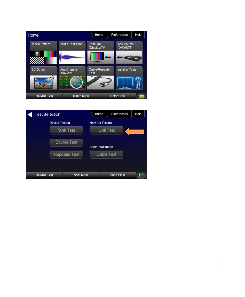 A diagram will appear on the 780 display depicting the proper setup for the Link Test.