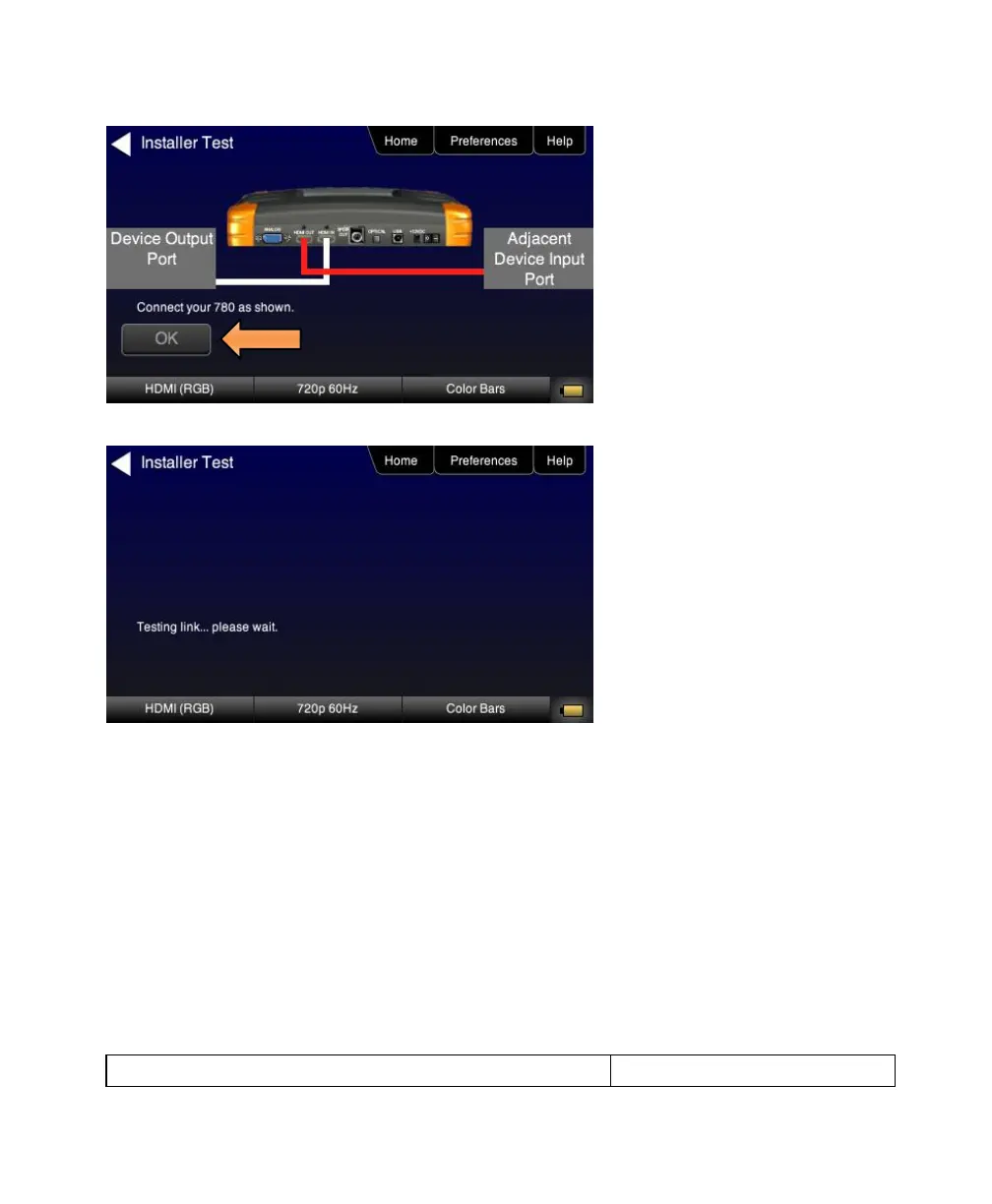 You will be instructed to switch interfaces on the HDTV during the test. Touch select the appropriate the OK activation