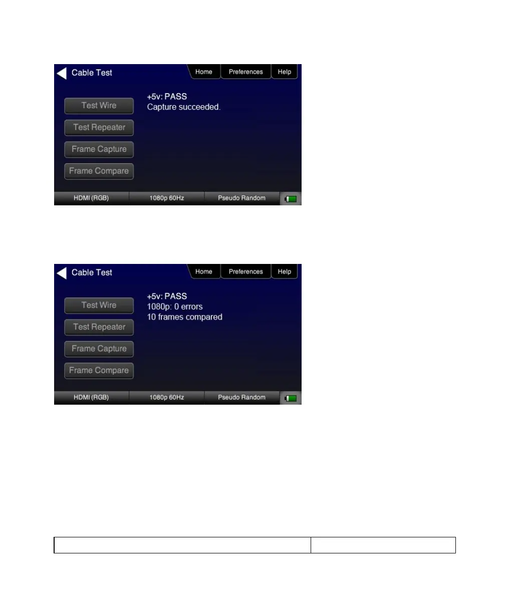 The following screen example shows the results of the Frame Compare test. Note that the incoming resolution is