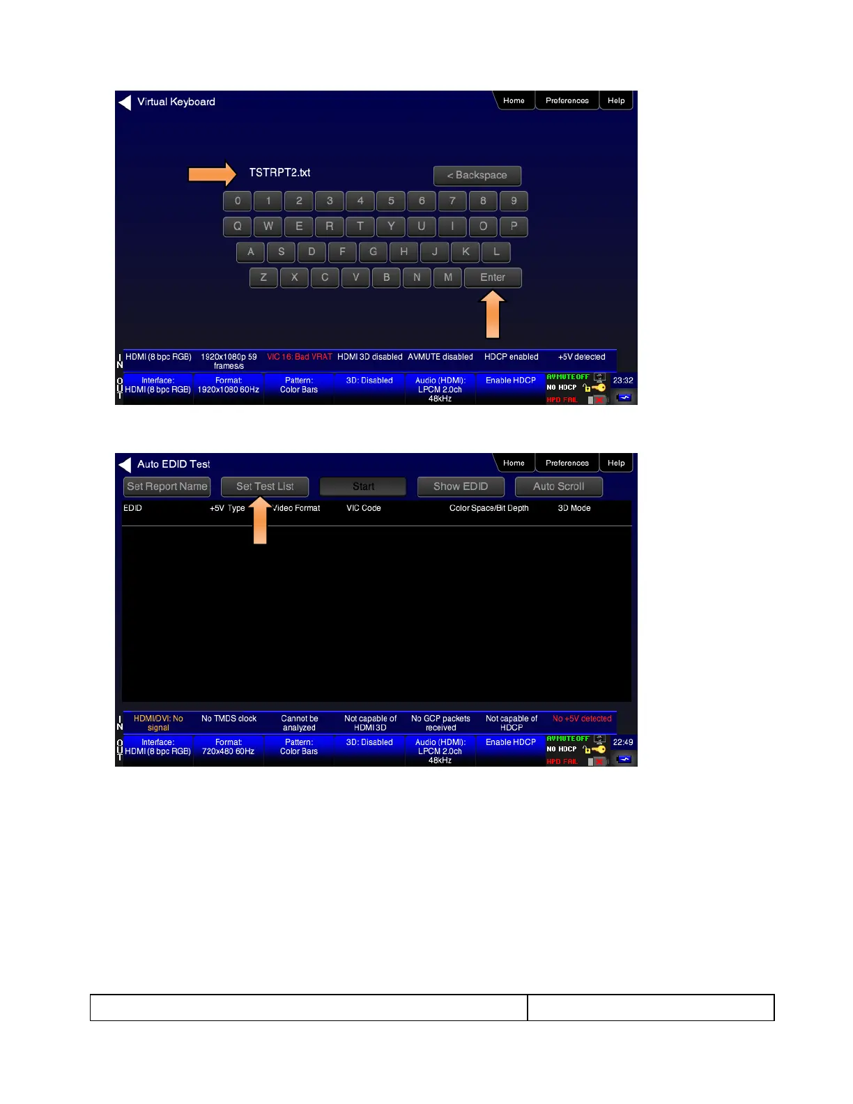 5. (Optionally) Touch select the Set Test List activation button if you wish to use your specific list of EDIDs for